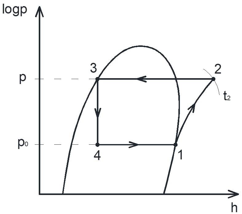 Az elején csökken a hűtőközeg hőmérséklete, leadja a túlhevítettségi hőjét, majd kondenzálódik. A túlhevítettségi hő a fázisváltozási hőhöz képest kicsi, így elhanyagoljuk a számításnál.