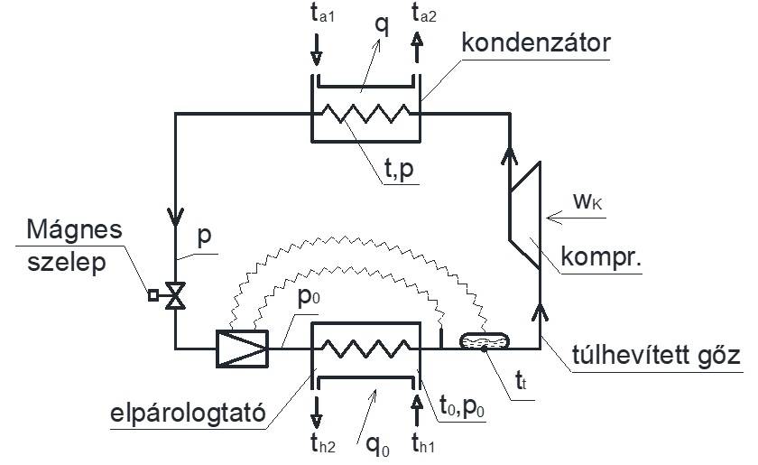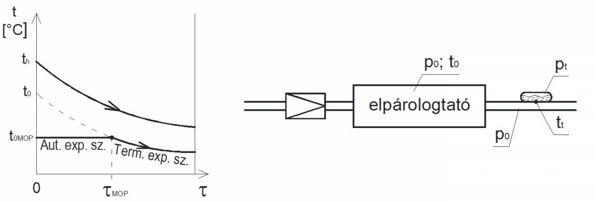 1. ábra A MOP-szelep munkapontja a nyomáskondenzációs hőmérséklet-diagramon