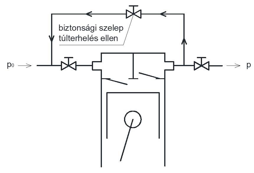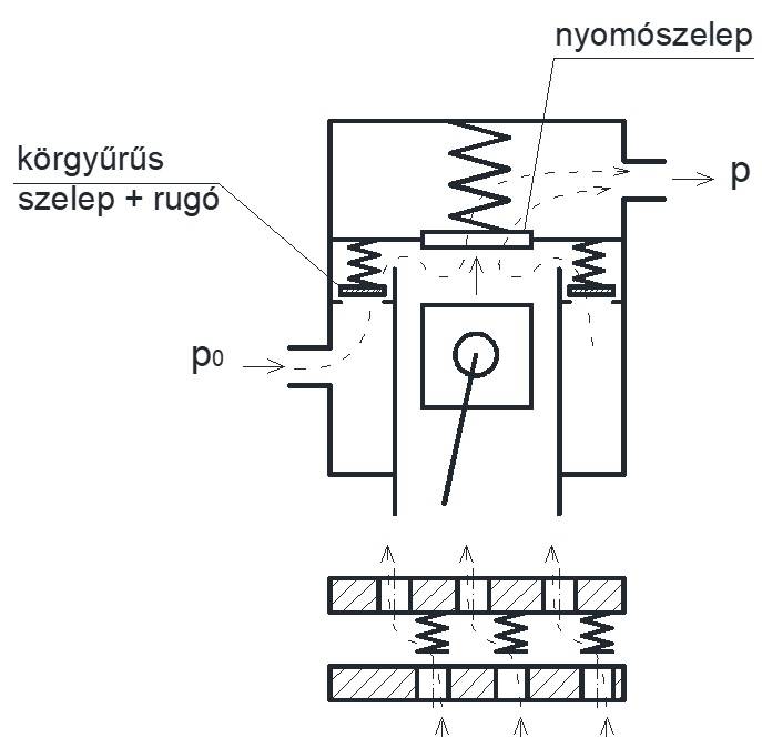 Nyomószelep: nyit, ha a hengerben uralkodó nyomás magasabb, mint a kondenzációs nyomás.