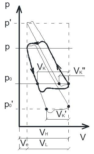 Ahol VH a henger térfogata, VK a hűtőközeg töltettérfogata, Ve a káros tér, VL a lökettérfogat.