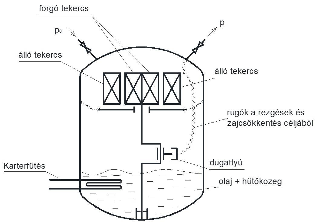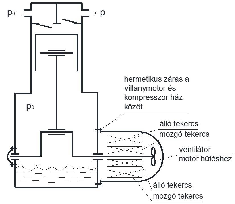 9. ábra A teljesen hermetikus kompresszor felépítése