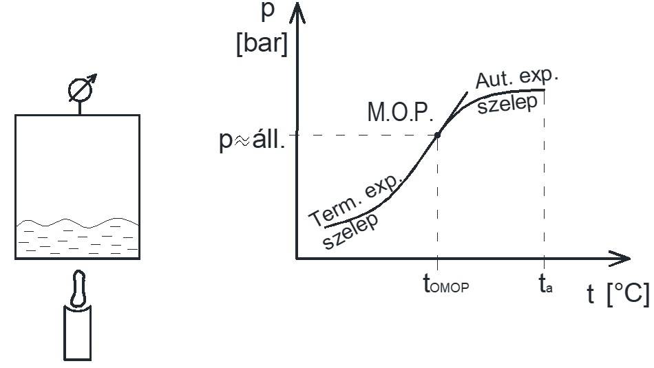 1. ábra A MOP-szelep munkapontja a nyomáskondenzációs hőmérséklet-diagramon