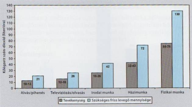 A levegő CO2-tartalma fontos tényező a szoba levegőminőségének meghatározásakor, mivel a lakók döntő többsége akkor találja a levegő minőségét kellemesnek, ha a CO2-tartalom 0,1% alatt van. Ha a lakótérben ennél magasabb az aránya, akkor álmosság, koncentrációs zavar, valamint fojtó, használt levegő érzete léphet fel. Az ember CO2-leadása, valamint minden további, a lakóterek emberi használat következtében keletkező légszennyeződése képezi a szükséges levegőmennyiség meghatározásának alapját. Felnőtteknél a CO2-leadás óránként az aktivitás függvényében 10 és 75 liter/óra között változhat.